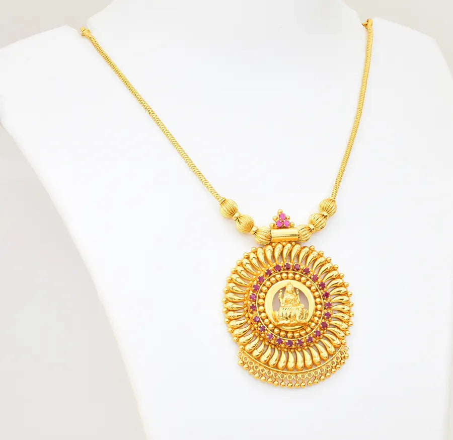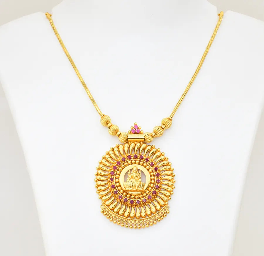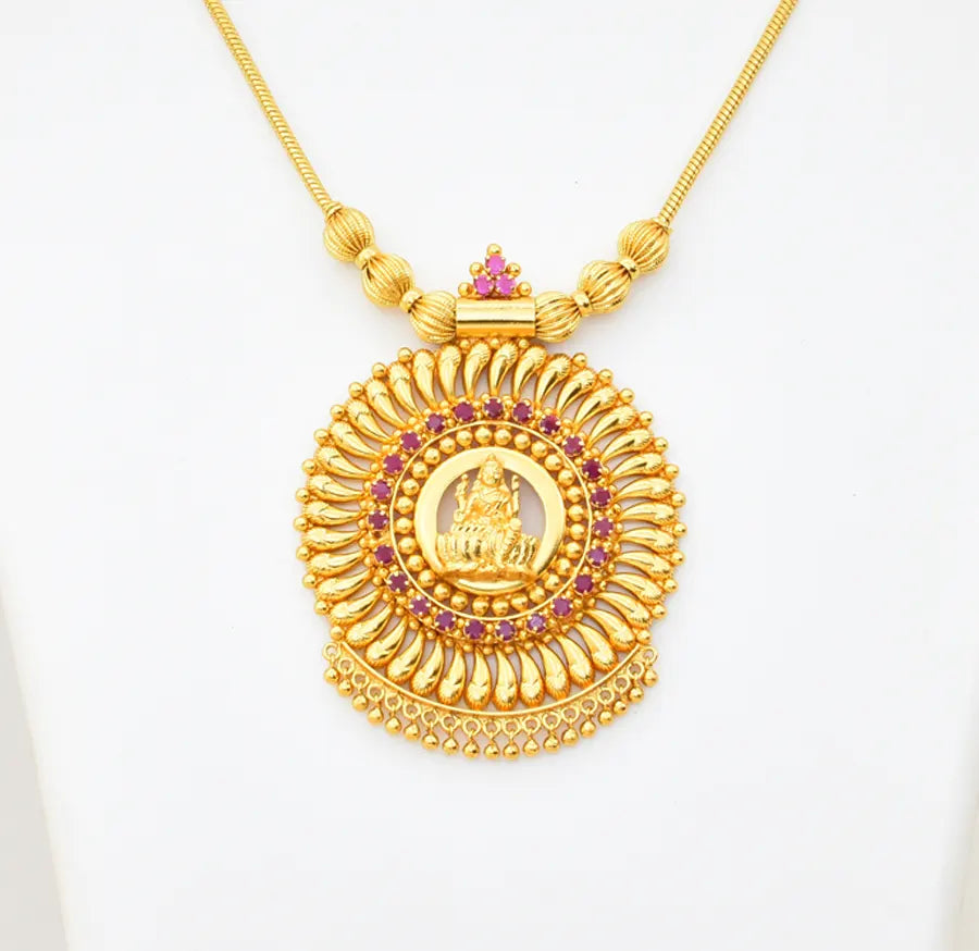 • Gold Layered Magenta Lakshmy Locket With Chain.